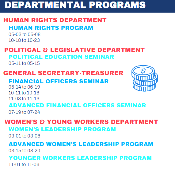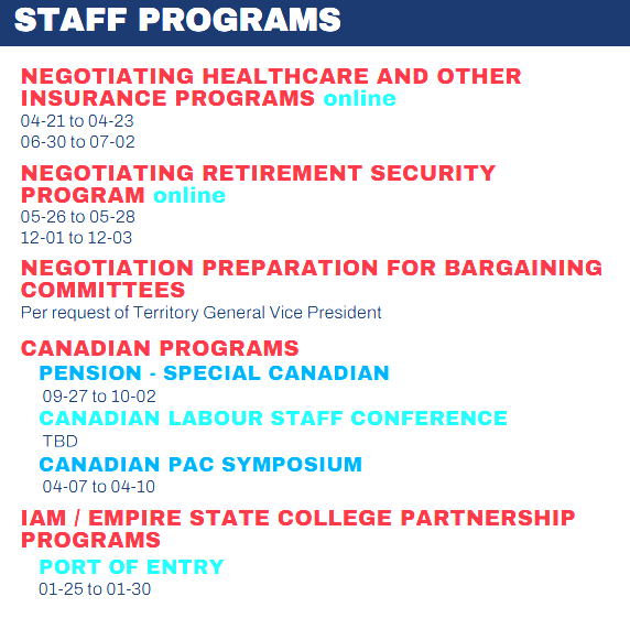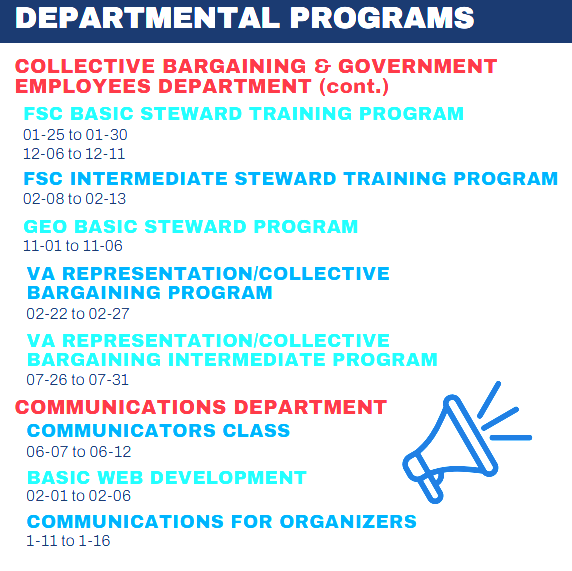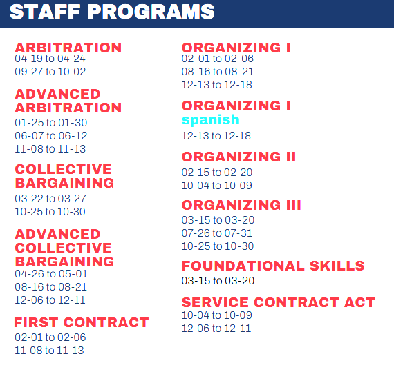 Full 2026 schedule is now available, enroll now for classes beginning in March! See your Steward if interested. Full pdf file is available as well as images below.